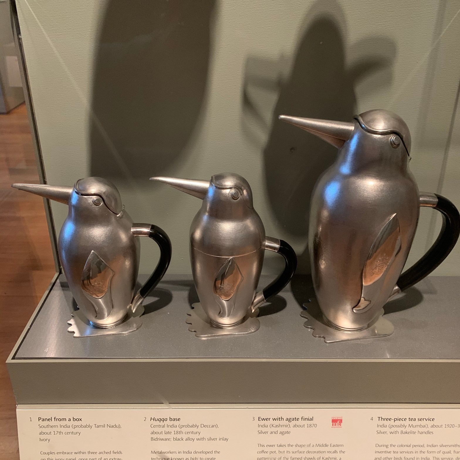 I like the penguins, because they are funny. You basically open up their head and fill it with tea or water and then just use it. I don’t get the thought process behind it. Apparently Indians made it. I wonder when it would it be used; I’m pretty sure it wouldn’t be used every day,Continue reading “Penguin-form three piece tea service”